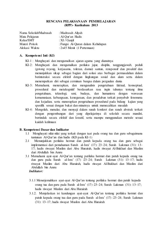 Rpp Alquran Hadits Mi Kurikulum 2013 Halaman / Dokumen