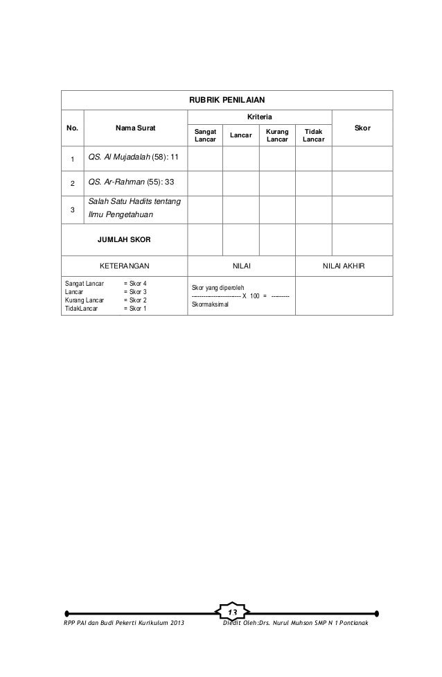 Rpp Pai Dan Budi Pekerti Sma Kurikulum 2013 Halaman / Dokumen
